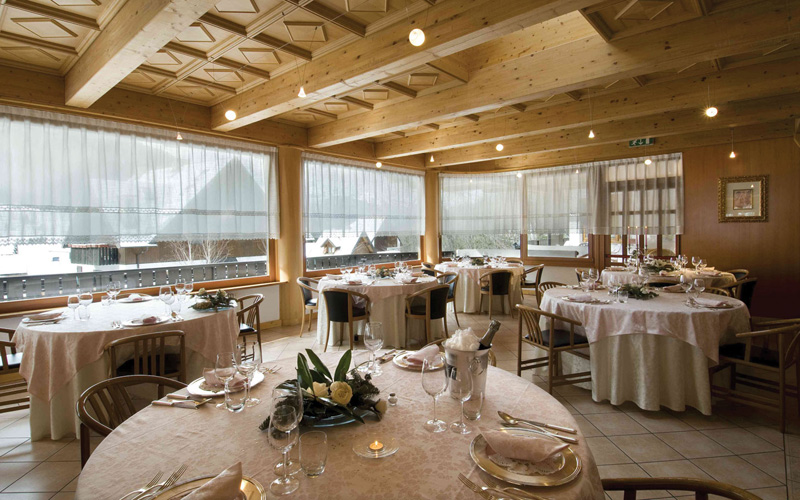 HotelLa Perla is builtin stone and wood, andfits perfectly into themountain surroundings,in a quiet areawith spectacular views,just steps awayfrom the slopesandthe town.Allrooms have2-5 beds,aprivate bath, TV,telephone and balcony.Inthe hotel there isrestaurant, hall, lounge,bar,sauna,fitness, solarium,ski storage, parking.